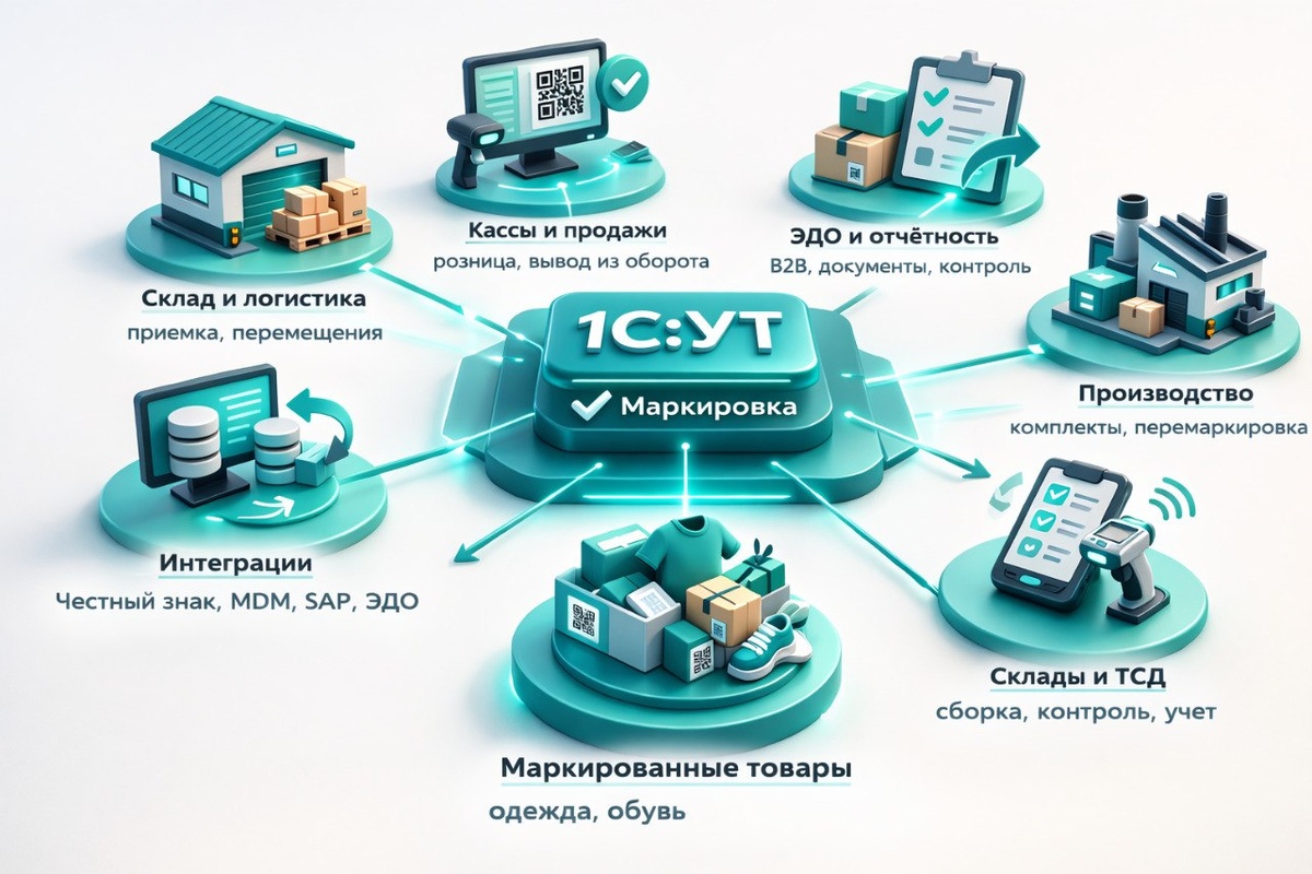 🔹 Кейс: внедрение 1С:УТ с маркировкой у производителя и поставщика СИЗ