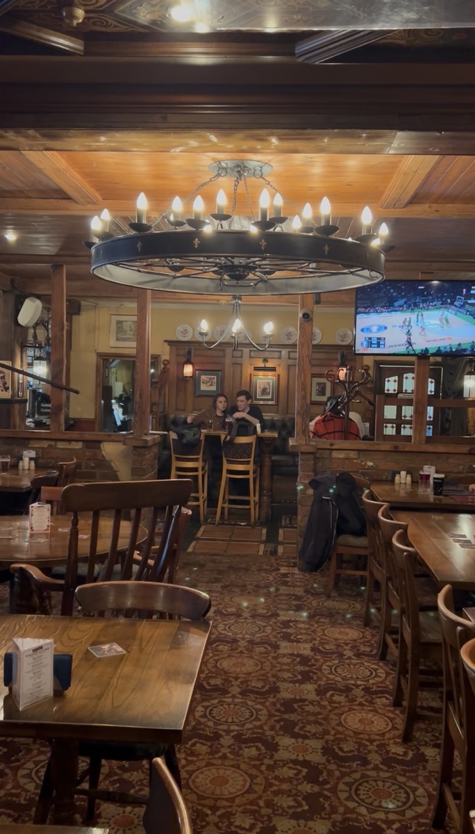 Любим посещать пивные бары , выбрались днем в субботу 🤭 народу было мало). На Яндекс оценка 4.8 😀Это сеть Английских пабов.Обстановка соответствует стилистики старинных баров. Заказали теплый салат из курицы и баклажанов ничего особого оценка 3,