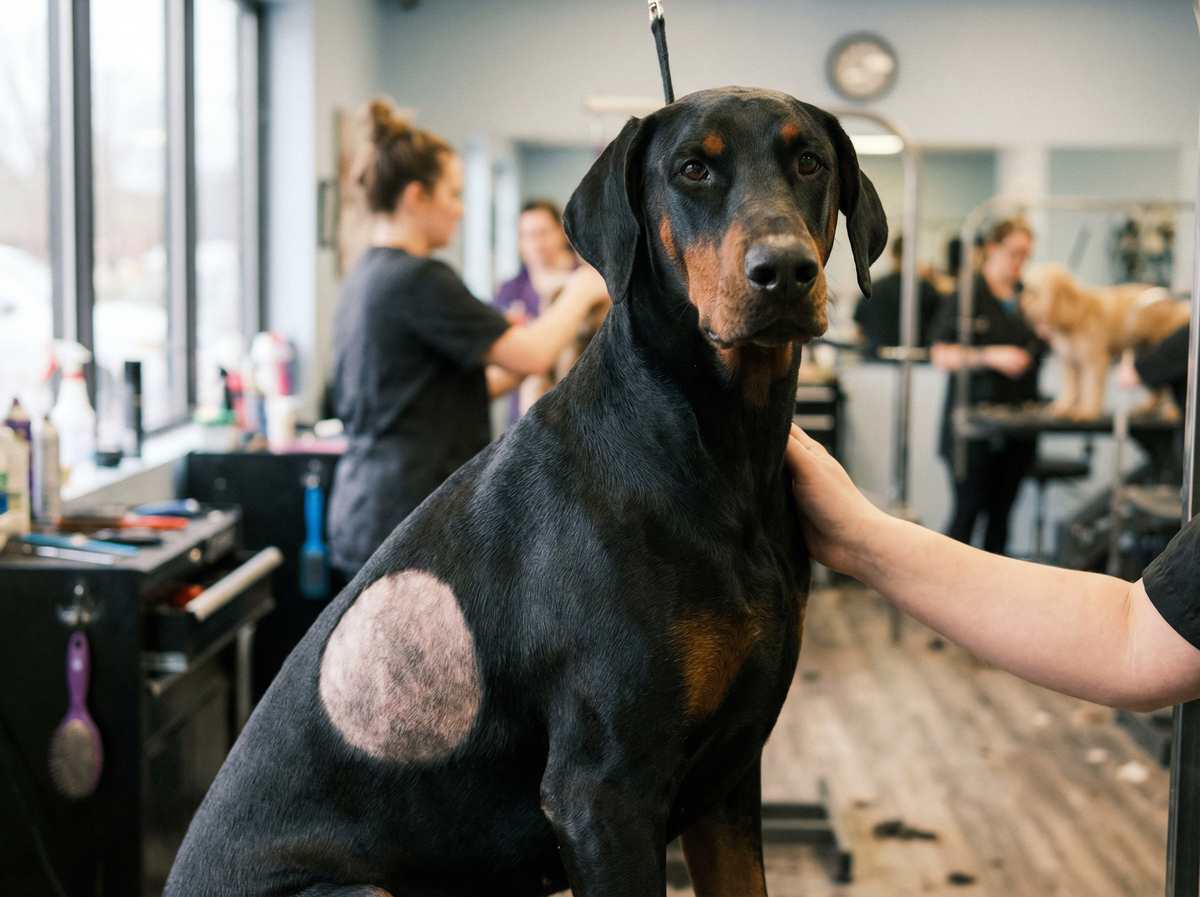 В панике я подстригла шерсть вокруг ещё сильнее. И вот уже на боку у добермана красовался почти идеальный круг из короткой шерсти, а вокруг — длинная.