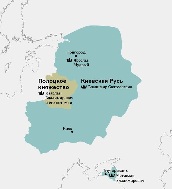 1. 1015 год В начале XI века Русь представляла собой более или менее цельное государство. Единственной обособившейся от него территорией в то время было Полоцкое княжество, в котором с конца X столетия укрепились потомки Изяслава Владимировича — внуки киевского князя Владимира Святославича (известного также как Владимир Святой). 2. 1026 год В 1015 году киевский князь Владимир Святославич умер. Между его многочисленными сыновьями началась междоусобица, в результате которой в живых остались только Ярослав, Мстислав и, по-видимому, самый младший сын Владимира — псковский князь Судислав. В 1026 году Ярослав и Мстислав поделили между собой земли Киевской Руси. 3. 1036 год В 1036 году Мстислав Владимирович умер. Поскольку его единственный сын Евстафий умер раньше него, земли перешли к Ярославу. Государство фактически восстановилось в границах 1015 года. 4. 1054 год В 1054 году Ярослав умер, предварительно самостоятельно разделив земли между своими сыновьями: Изяслав получил Киев, Святослав —