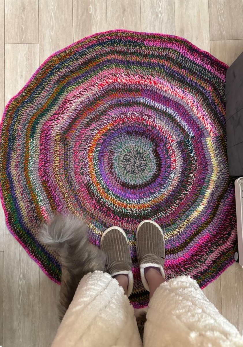 Лучше вспомнить бабушку. Она-то знала толк: когда берешь остатки разной пряжи и вяжешь по кругу. Просто по кругу, пока не надоест. Получается тот самый яркий, чуть сумасшедший коврик. Где шерсть соседствует с хлопком, а фактуры спорят друг с другом. Это не дизайн, это жизнь. Идеально в кресло на даче.