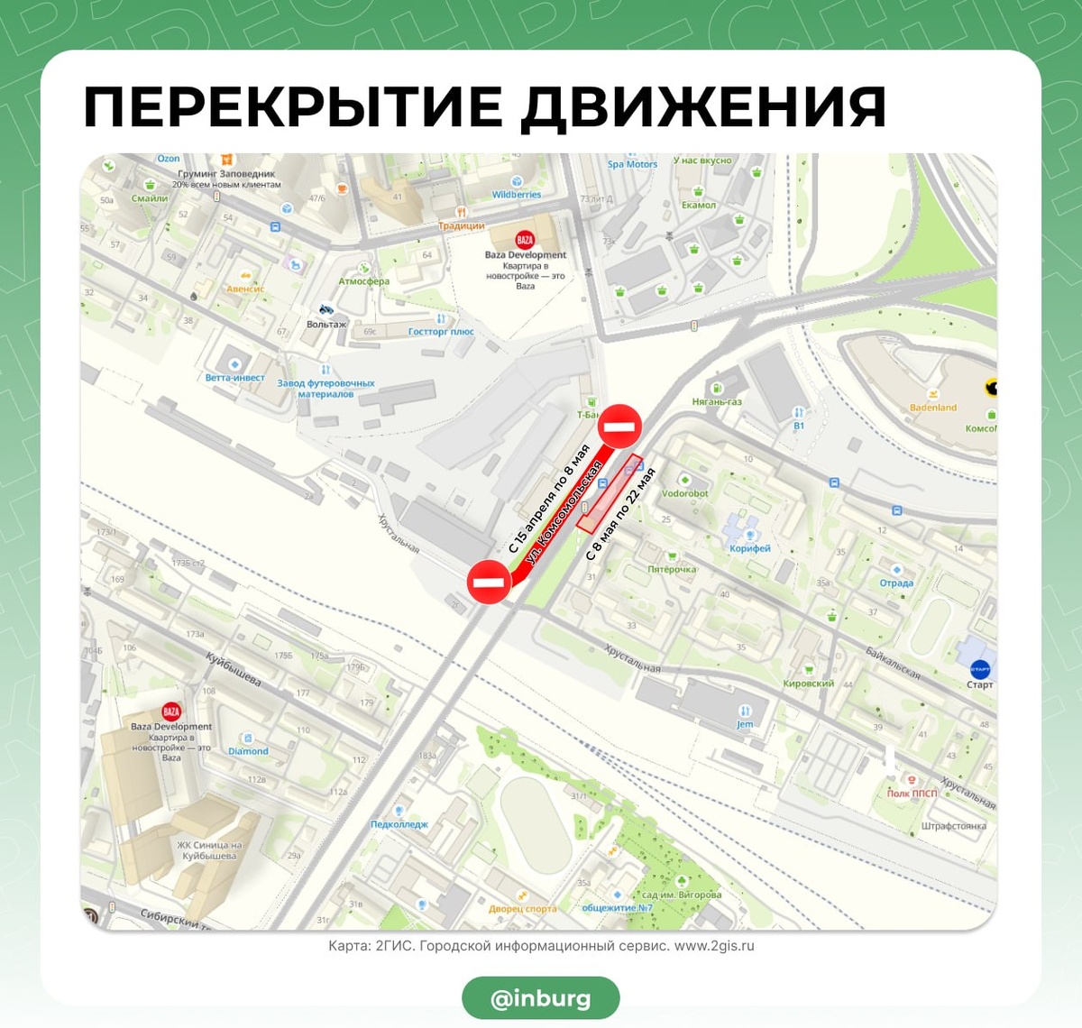 С 15 апреля по 8 мая для движения закроют часть Комсомольской. Затем, с 8 по 22 мая, ограничения введут на перекрестке Комсомольской и Байкальской.