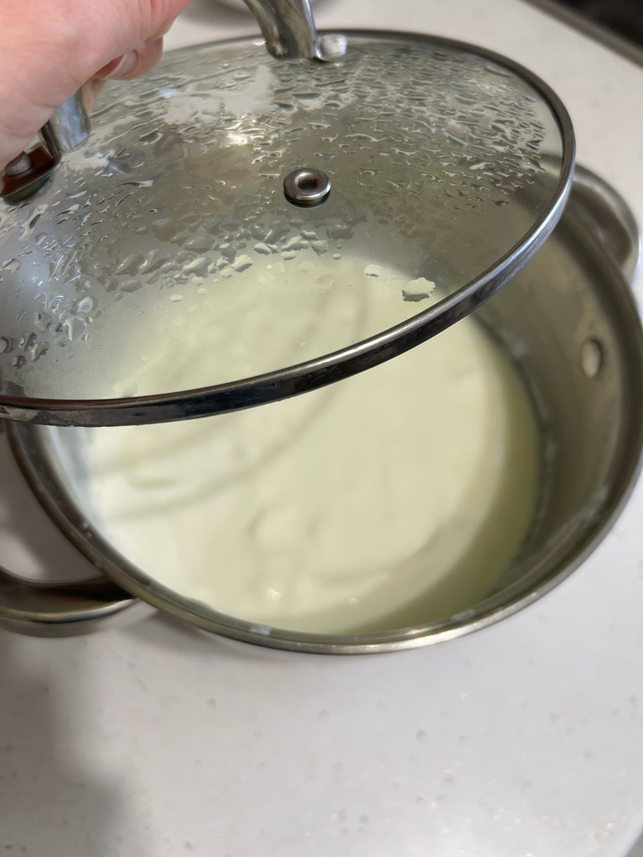 Понадобится: Пакет молока (900 мл) любой жирности Маленькая баночка йогурта без добавок (типа "Актибио") Мы привыкли готовить такой йогурт вечером (на завтрак). Молоко нужно вскипятить, остудить до комнатной температуры. Далее добавить баночку йогурта и оставить на ночь в теплом месте. В холодное время года мы обычно кастрюльку ставим на батарею. А летом и так тепло: достаточно оставить кастрюльку на столе. Утром вас будет ждать готовый домашний йогурт. Как видите, домашний йогурт можно сделать без разных йогуртниц. Из одной маленькой баночки получается целая кастрюлька! Очень вкусно! Не отличишь от магазинного йогурта без добавок. Можно добавить по вкусу ягоды, орешки или использовать для выпечки. Пробуйте! Храним в холодильнике. Оставьте 2-3 ложки йогурта, чтобы потом сделать новую порцию. P.S. Чем меньше жирности у молока, тем больше сыворотки будет в йогурте. Сыворотку можно убрать для приготовления блинов. В этой статье рассказываю, как делала торт на основе такого домашнего й