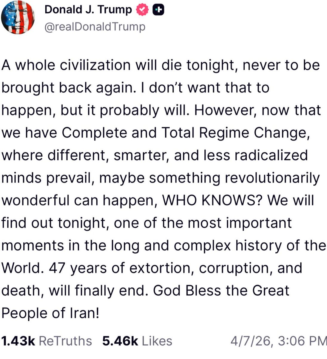 Дональд Трамп написал в Truth Social, что Иран, по его словам, переживает переломный момент, а 47 лет вымогательства, коррупции и смерти могут подойти к концу. 🇺🇸