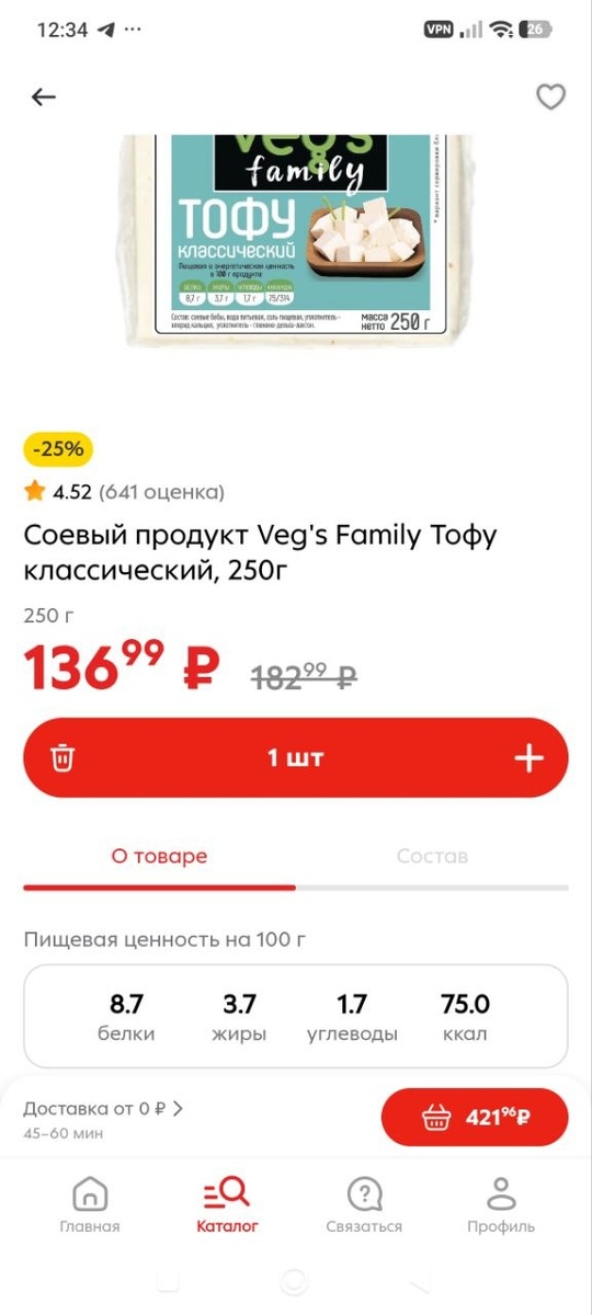 Обычно я заказывала на Озоне, а тут прям домой привезли)) действительно полезная находка, если хочется разнообразить рацион без лишней тяжести для ЖКТ. Что такое тофу? Это продукт из соевых бобов, по сути соевый творог.У него довольно нейтральный вкус, поэтому он легко подстраивается под блюдо: может быть и солёным, и сладким. То есть по смыслу это что-то между творогом и яйцами, только в растительном варианте. Для понимания: • 100 г тофу по белку это примерно как 1,5–2 яйца • по калорийности он легче, чем большинство сыров • и обычно мягче переносится, чем жирная молочка или тяжёлые мясные перекусы Кому может подойти? • тем, кто плохо переносит молочку • тем, кто хочет больше лёгких белковых продуктов • людям с чувствительным ЖКТ • тем, кто держит белок в рационе, но устал от курицы и яиц • в пост или просто для разнообразия Это правда удобный белковый продукт, который можно спокойно встроить в обычную жизнь. Как его есть, если ни разу не пробовали? 1. Самый простой солёный в