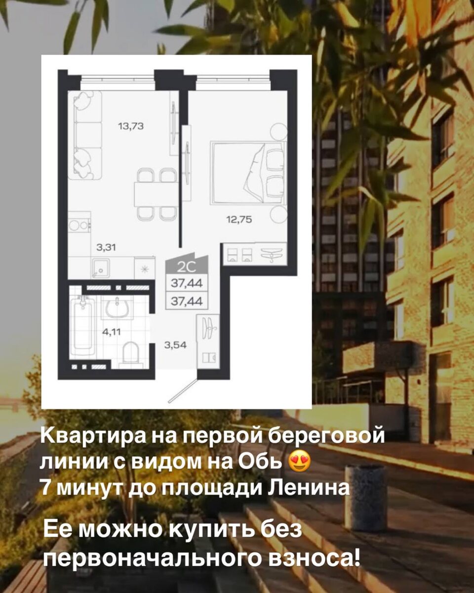 Вы можете купить эту квартиру без первоначального взноса! Вид на реку 😍 До площади Ленина 7 минут езды. Через год можно перейти на семейную или айти-ипотеку, а также на базовую ставку 11,5% и ниже 🔥 Хотите спланировать покупку сейчас и зафиксировать стоимость квартиры? Чтобы узнать подробнее и рассчитать ежемесячный платеж, оставляйте заявку ••