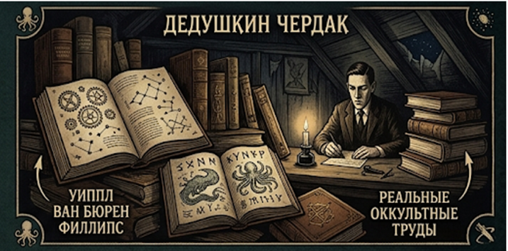Говард Филлипс Лавкрафт — создатель Ктулху и отец космического ужаса. Его часто представляют безумным визионером, но на деле он был убежденным материалистом, верившим только в сухие научные факты. Вселенная для него была бездушным механизмом. Но вот парадокс: именно этот атеист создал «Библию» для современных оккультистов и наполнил свои тексты шифрами, которые до сих пор пытаются разгадать эзотерики всего мира. Откуда у сухого рационалиста такая тяга к древним культам? Корни уходят в библиотеку его деда, Уиппла Ван Бюрена Филлипса. Пока сверстники Говарда играли в мяч, он зависал среди пыльных томов XVIII–XIX веков. И это видно. Лавкрафт не просто выдумывал названия зловещих книг — он был чертовски дотошен. В его рассказах упоминаются десятки реальных оккультных работ, типа трактатов Иоганна Тритемия (аббат XV века – отец криптографии, которого считали магом) или трудов Артефиуса и Альберта Великого (фундамент западного эзотеризма). Лавкрафт мастерски смешивал реальные гримуары с вымы