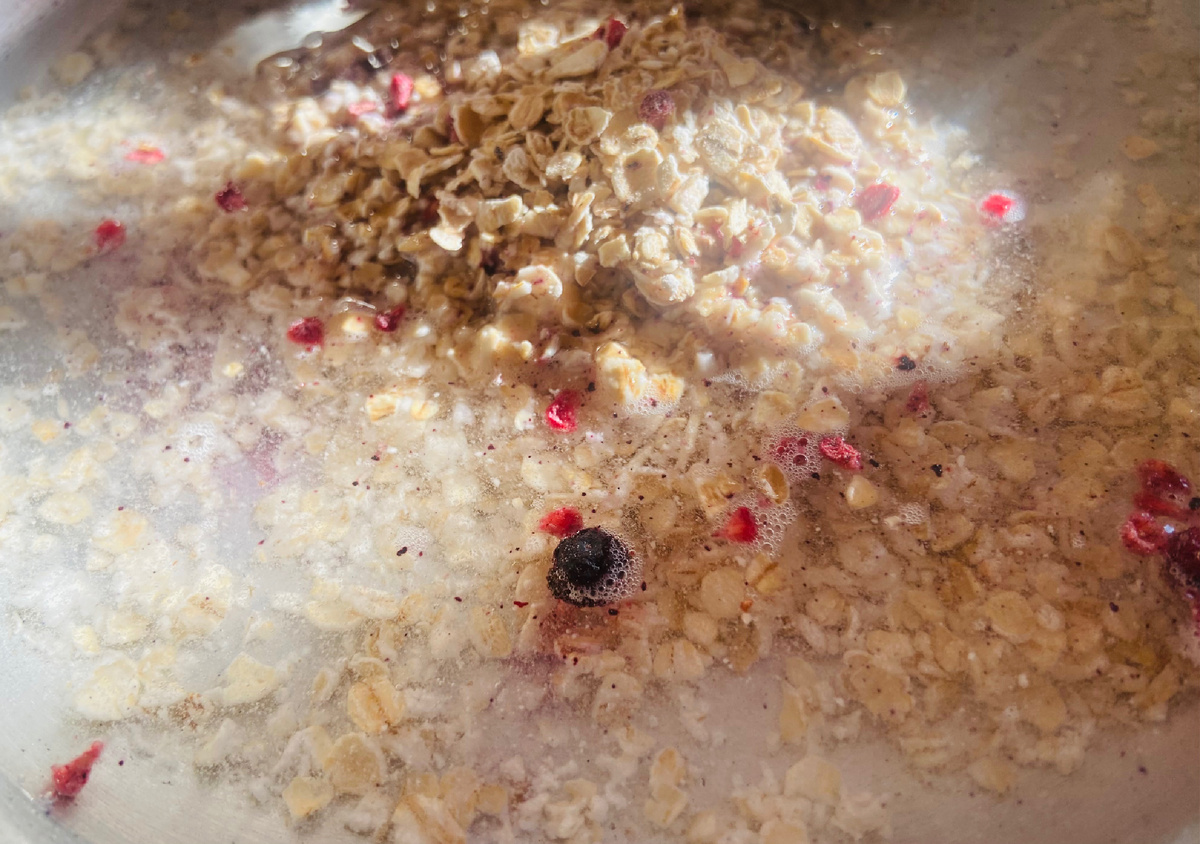 Пока жестяной громко шумел, кашу овсяную с лесными ягодами сварила. Правда ягодами их с трудом можно назвать, так: крошки с пылью. А ещё при нагревании хлопья овсяные синеть начали. Страшновато за свое здоровье стало. Не случилось бы чего…