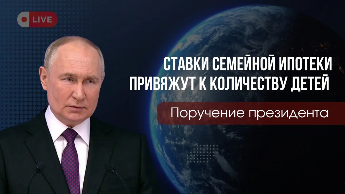 Президент России Владимир Путин поручил правительству к 1 июня представить предложения по дифференциации ставок семейной ипотеки - в зависимости от числа детей. Если его примут, ставки будут зависеть от количества детей, как это отразится на реальных суммах? Читайте ниже 📌 telegram-канал https://t.me/morozova_alenaaaa Вконтакте https://vk.com/morozova_alenaa Канал в Макс https://max.ru/morozova_alenaa Ютуб-канал https://www.youtube.com/@morozova_alenaa/videos