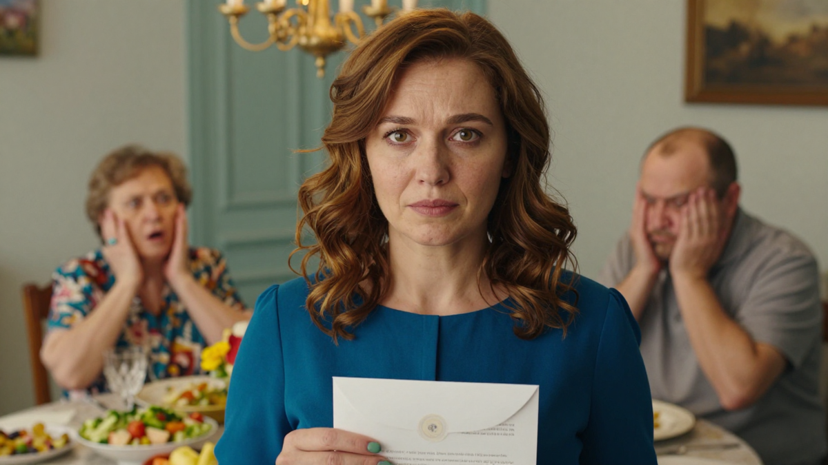 Тишина в комнате стала плотной. Кум поставил рюмку, не донеся до рта. Тётя Рая открыла рот и не закрыла. Эмма Павловна потянулась к конверту – рука у неё дрожала, перстень бил по скатерти.