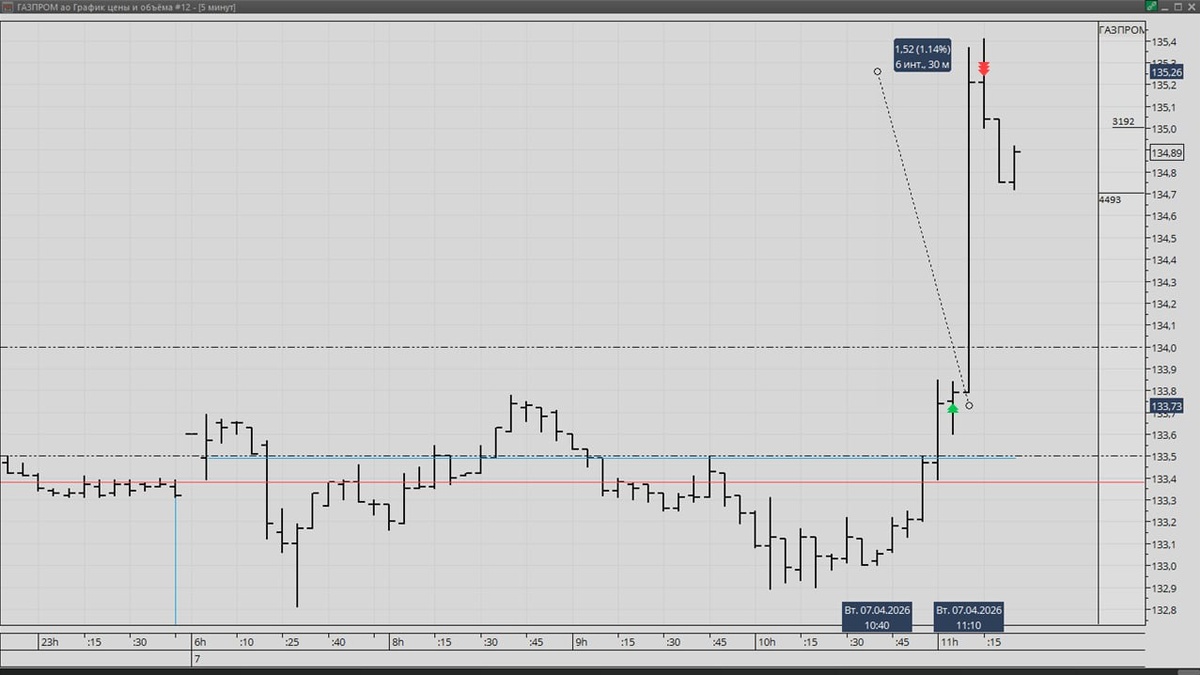 ▫️ Газпром +1,1% 📈 Точка входа ( СЛП ) 💰 Риск | Прибыль ( 1к 4 ) Красная линия на графике показывает где поставил стоп ! 🥳 Поздравляю всех, кто заработал !!! 💬 Бесплатный | Чат - ПЕРЕЙТИ #сделки
