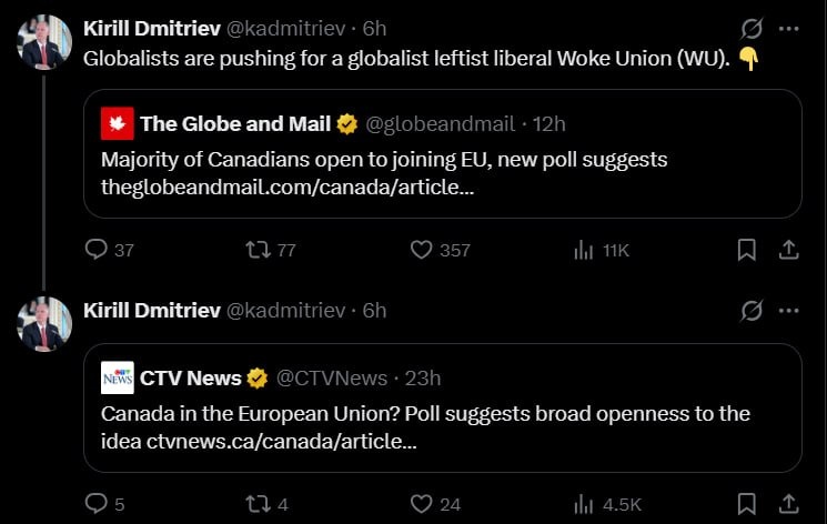 'Liberal Woke Union (WU)' — Putin's envoy Dmitriev TROLLS Canada's EU ambitions