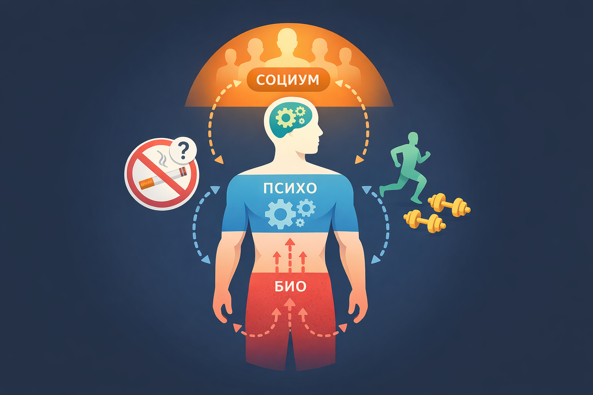Я уже писал о важности вербализации. Но без структуры она часто превращается в трудную и хаотичную задачу. Эмоции, воспоминания, планы, отношения, информационный шум — всё это складывается в калейдоскоп фрагментов, которые поочерёдно захватывают наше внимание. Если человек не умеет собирать этот материал в цельную картину, ему трудно отличить поверхностные симптомы от глубинных причин. А значит, усилия будут направлены не туда, где они действительно нужны. Чтобы упорядочить этот хаос, нужна оптика, которая позволяет рассматривать человека как целостную систему. Одной из таких опор может служить биопсихосоциальная модель. В её рамках человек рассматривается как единство трёх взаимосвязанных компонентов: Ключевая идея этой модели в том, что ни одна из трёх частей не существует сама по себе. Большинство проблем и внутренних конфликтов возникают не на каком-то одном уровне, а на стыке сразу двух или трёх. Чтобы увидеть это на практике, разберём простой пример. Допустим, человек хочет броси