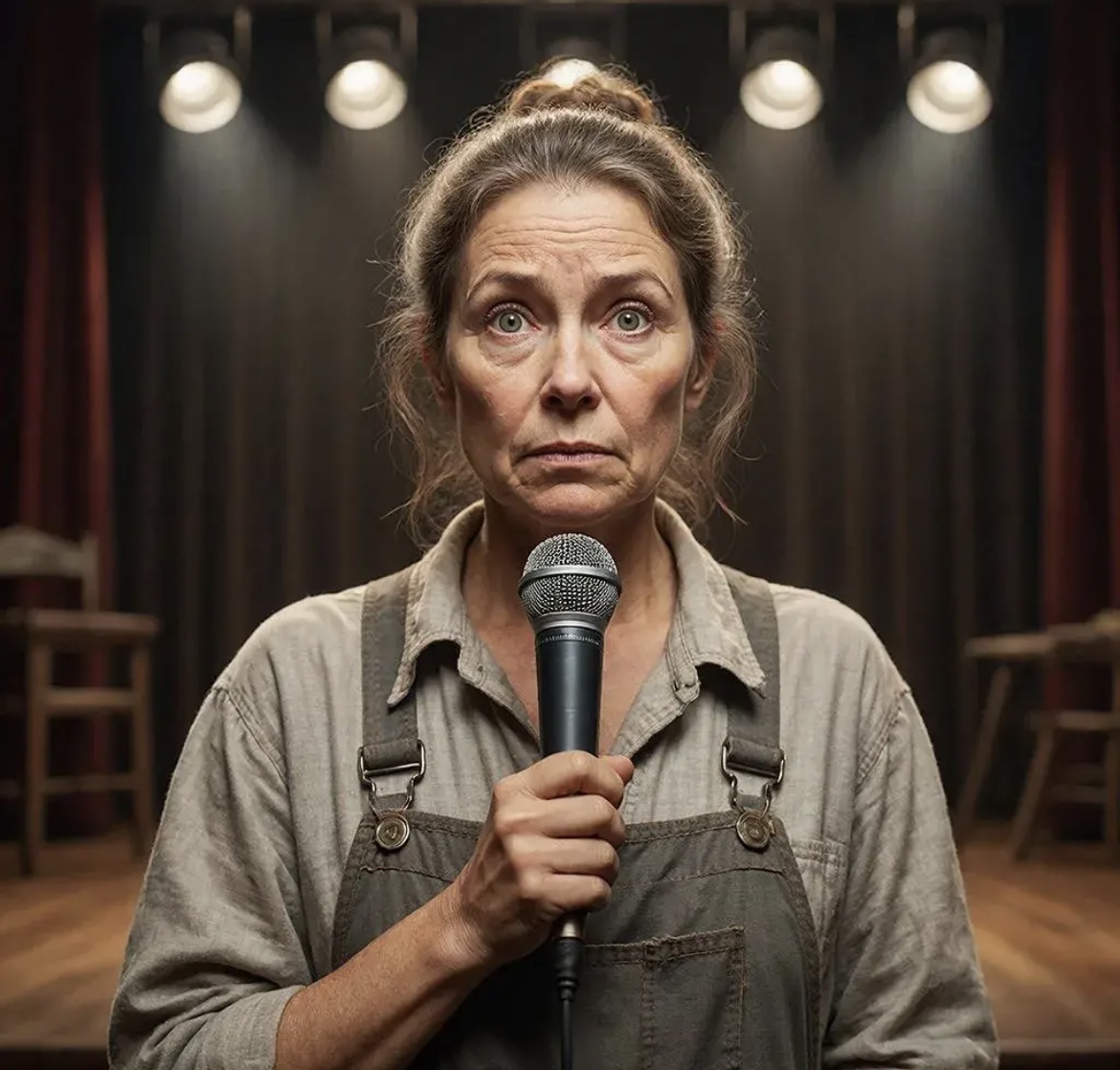 Девушка подошла к микрофону. Её руки слегка дрожали, но взгляд был спокоен и твёрд. Она поправила выбившуюся прядь волос и обвела зал глазами. На мгновение её взгляд встретился с глазами хозяина — в нём не было ни страха, ни обиды, только холодное достоинство.