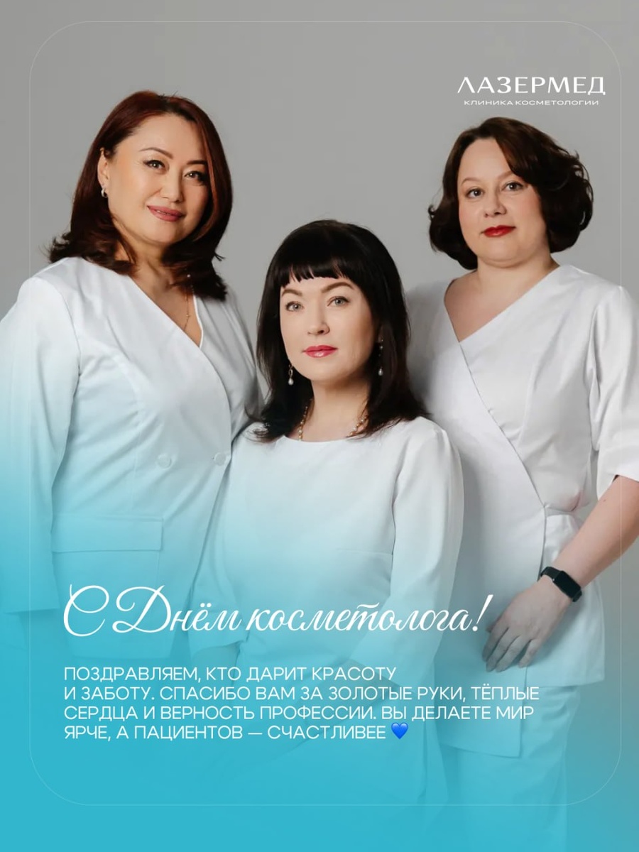 ! 🌸 Сегодня мы поздравляем всех, кто каждый день дарит красоту, заботу и уверенность. Наших врачей, косметологов, медсестёр — всех, кто стоит за каждой улыбкой наших пациентов. Спасибо вам за золотые руки, за то, что никогда не останавливаетесь в обучении, за тепло, с которым вы встречаете каждого человека. Вы — наша гордость 💙 И отдельное спасибо вам, наши дорогие пациенты. За доверие, за тёплые слова, за то, что выбираете нас. Ваши улыбки и результаты — лучшая награда для нашей команды. С праздником! Пусть красоты вокруг становится только больше 🌷
