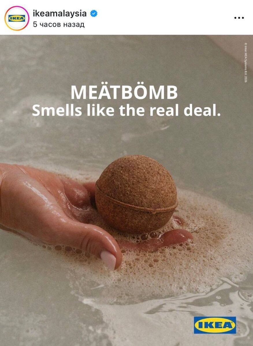 Ссылки в исходном тексте нет. Вот переработанная статья: IKEA выпустила бомбочки для ванны с запахом фрикаделек, и это не шутка, а точный маркетинговый расчет Малазийское подразделение IKEA добавило в ассортимент бомбочки для ванны с ароматом фирменных фрикаделек. Тех самых, которые продаются в ресторане при магазине и которые давно стали неофициальным символом бренда наравне с плоской упаковкой и шестигранным ключом. Первая реакция большинства людей предсказуема: зачем, это же странно, кто это купит. Но именно эта реакция и делает продукт маркетингово ценным. Разберем, что здесь происходит на самом деле. IKEA уже много лет последовательно превращает свою еду в полноценный элемент бренда. Фрикадельки давно перестали быть просто перекусом перед покупкой дивана. Они стали культурным феноменом, поводом для мемов, предметом ностальгии и точкой эмоциональной связи с брендом. Бомбочка для ванны это логичное продолжение этой истории, а не случайная причуда. С точки зрения нейромаркетинга здес