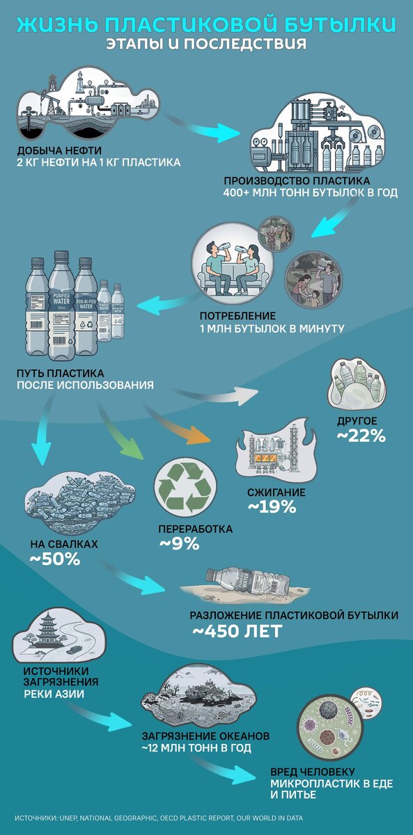 От добычи нефти до мусора в океане, или История одной пластиковой бутылки