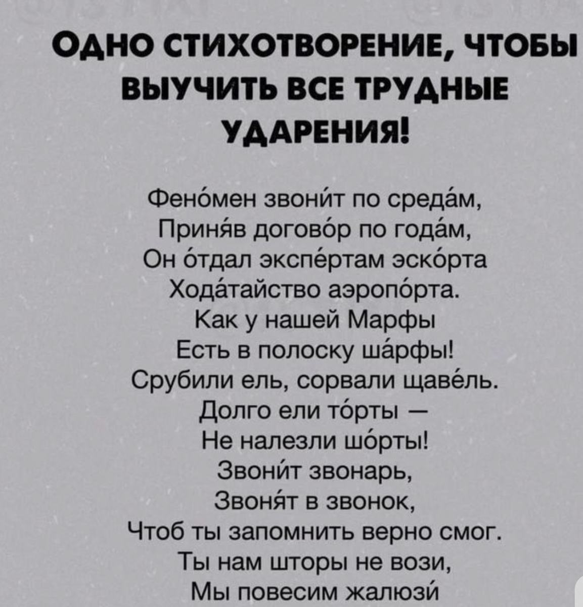 Интересный способ запомнить наконец-таки все слова с неоднозначными ударениями.