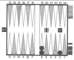 Одного из трех конкретных чисел: 27/36 В данной позиции черным надо сделать такой ход, чтобы максимизировать шансы на вынос фишек следующим ходом. Подсчет: После хода 6/0 6/5 - 19 успешных комбинаций из 36.