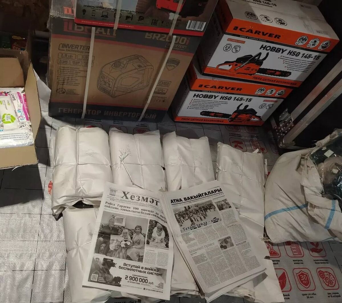 «Хезмәт» газетасы редакциясе коллективы волонтерлар махсус хәрби операция зонасына гуманитар ярдәм илткән чакта «Хезмәт», «Азълане