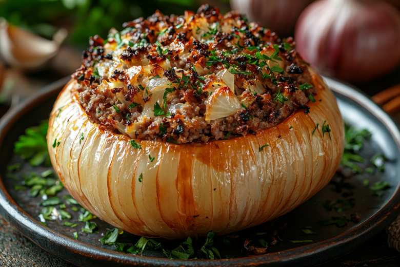 Сегодня я расскажу про блюдо, которое разлетается со стола первым. Гости сначала крутят носом: «Фаршированный лук?», а через минуту просят добавки. Знакомьтесь: Лук-гигант, фаршированный мясом и рисом в сливочной сметане.