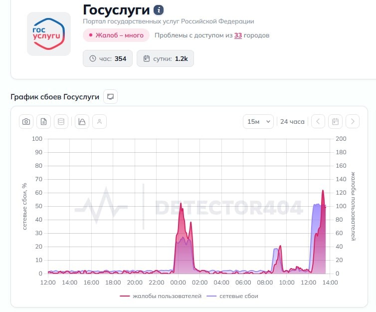 Масштабный сбой произошел в работе «Госуслуг» Пользователи не могут зайти на сайт и массово жалуются — уже больше тысячи обращений. По данным сервиса Downdetector, сбои фиксируют в 33 городах по всей стране, в том числе в Екатеринбурге. Сегодня ночью в Рунете уже был сбой — перестали работать банковские приложения, интернет-сервисы и мобильные операторы. У вас работает? ⬇️