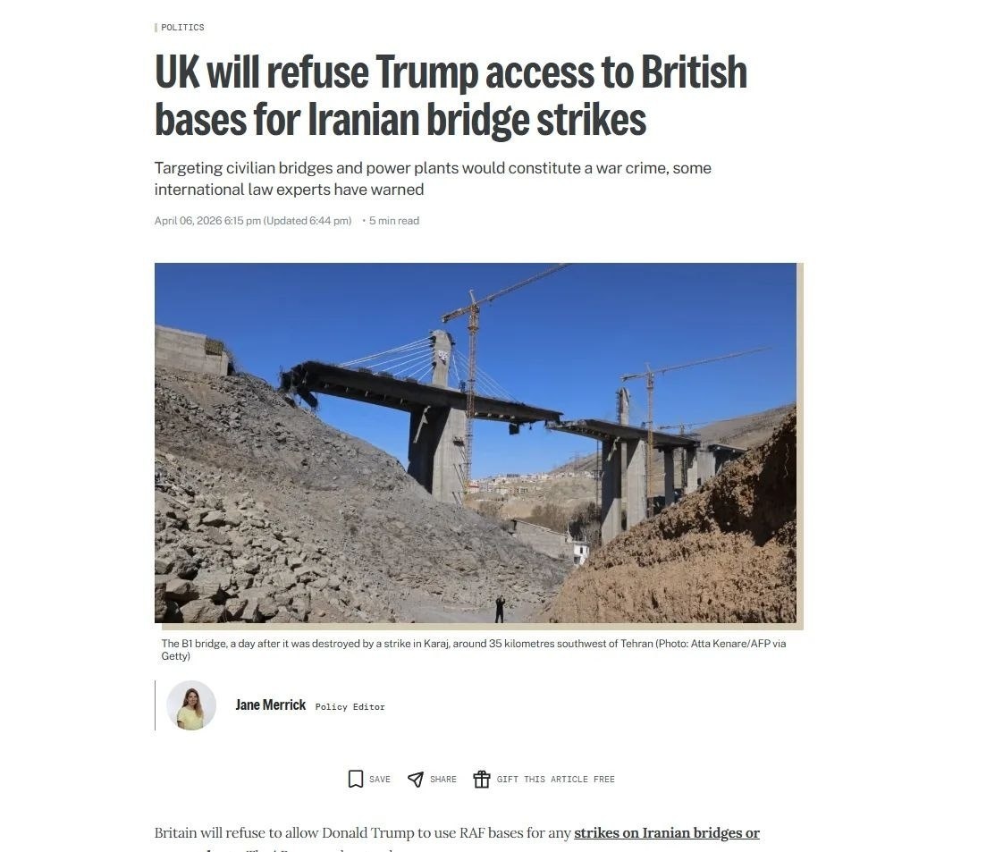 Великобритания откажет Трампу в доступе на британские базы для нанесения ударов по иранским мостам, – СМИ.
