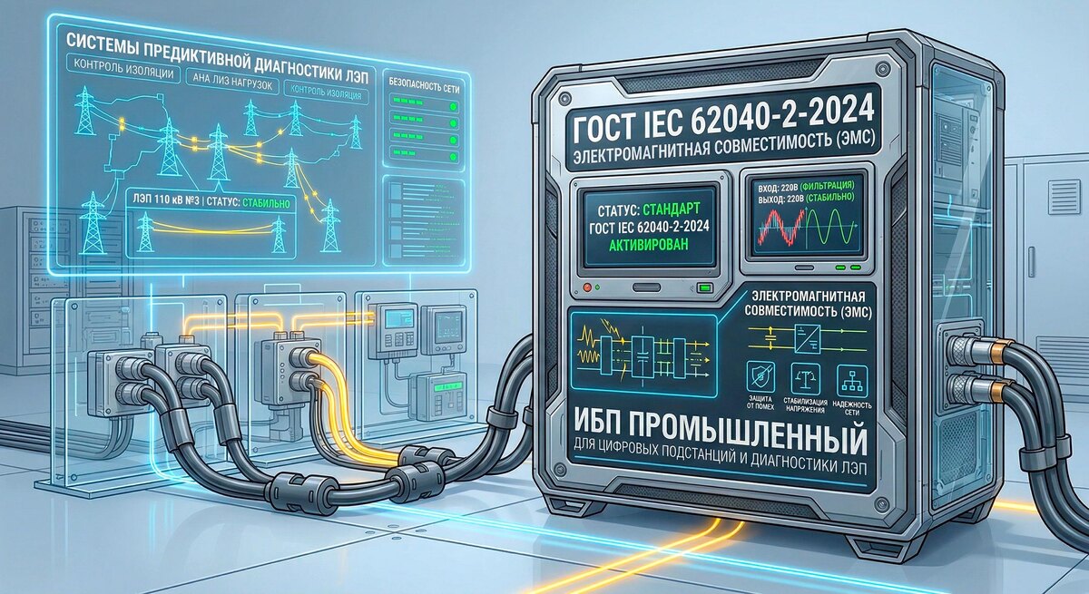 ⚡ Новый ГОСТ IEC 62040-2-2024: Стандарты ЭМС для энергетики в 2026 году! С апреля 2026 года в России введен новый стандарт электромагнитной совместимости (ЭМС) для систем бесперебойного питания, который окажет значительное влияние на надежность цифровых сетей и систем непрерывного электроснабжения. ### Ключевые аспекты нового стандарта: - Требования к ЭМС оборудования: Новый ГОСТ устанавливает жесткие требования, что критически важно для стабильной работы «умных» сетей и цифровых подстанций. - Поддержка цифрового оборудования: Системы ИБП нового поколения должны обеспечивать бесперебойную работу даже в условиях интенсивных электромагнитных помех. - Улучшение надежности: Новый стандарт гарантирует точность работы датчиков мониторинга состояния линий электропередач за счет качественного питания. ### Влияние на отрасль: - Цифровые подстанции: Повышение помехоустойчивости систем управления и сбора данных. - Системы накопления энергии (СНЭ): Унификация требований к инверторному оборудова
