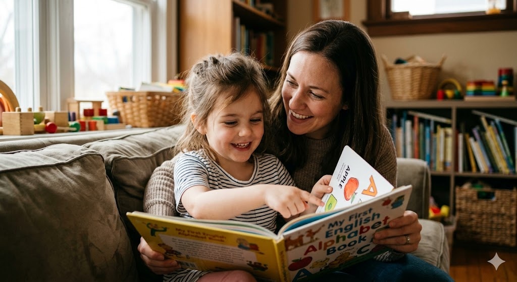 Формат: только игровой. Песни, карточки, движение, ролевые игры, сторителлинг. Никаких прописей, пока ребёнок не освоил базовое письмо на родном языке.
