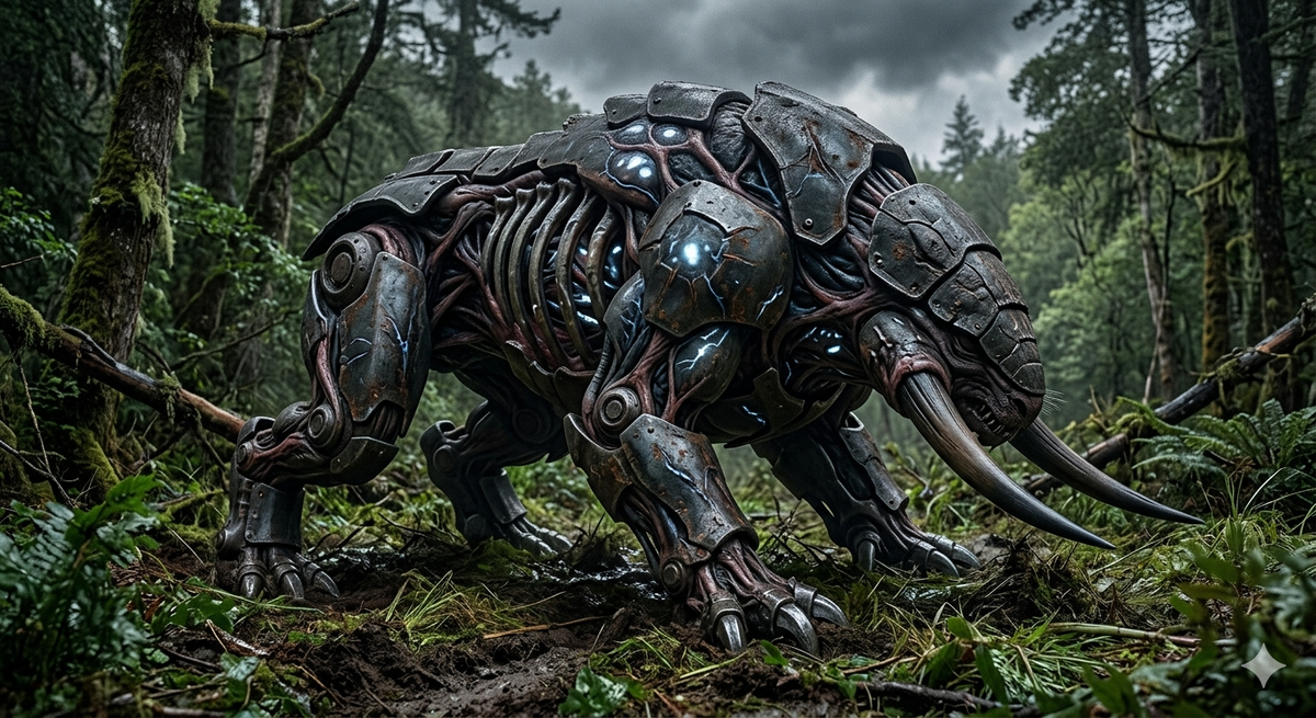 Представьте себе: вы идёте по лесу и слышите не хруст веток, а тяжёлое металлическое дыхание. Вы оборачиваетесь — а там танк. Он не рычит мотором, а дышит. Его броня не просто сталь — она покрыта венами, пульсирует. Он не едет — он переступает с гусеницы на гусеницу, как зверь, выбирающий след.