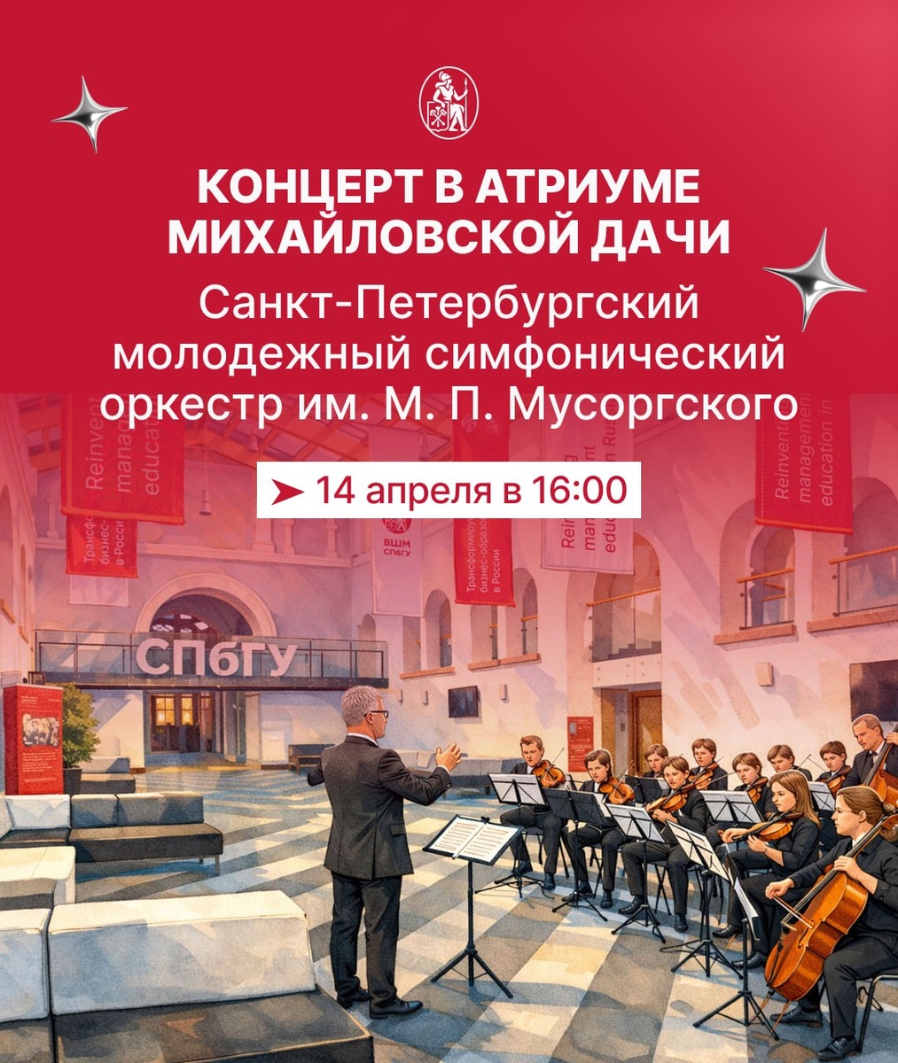 📌 14 апреля в 16:00 в Атриуме кампуса «Михайловская дача» ВШМ СПбГУ состоится концерт-беседа «О чём говорит музыка?» в рамках проекта «День классики в ВШМ СПбГУ». ⭐ Мероприятие приурочено к празднованию 65-летия первого полёта человека в космос. Если вам кажется, что классическая музыка – это что-то далёкое, сложное и «не для всех», возможно, этот вечер изменит ваше мнение. О чём этот концерт? «О чём говорит музыка?» – это возможность по-новому услышать знакомое и открыть для себя то, что обычно остаётся за пределами повседневного внимания. В программе – сочинения Баха, Глинки, Лядова, Менкена, Морриконе, Моцарта, Сарасате. Это музыка разных эпох, характеров и настроений, которая по-прежнему умеет говорить с человеком очень прямо и точно. Кто выступает? Молодые музыканты – студенты Санкт-Петербургского музыкального училища имени М. П. Мусоргского – исполнят шедевры симфонической музыки, а дирижёр Юрий Серов расскажет, как работает музыкальный язык, какие смыслы, чувства и образы