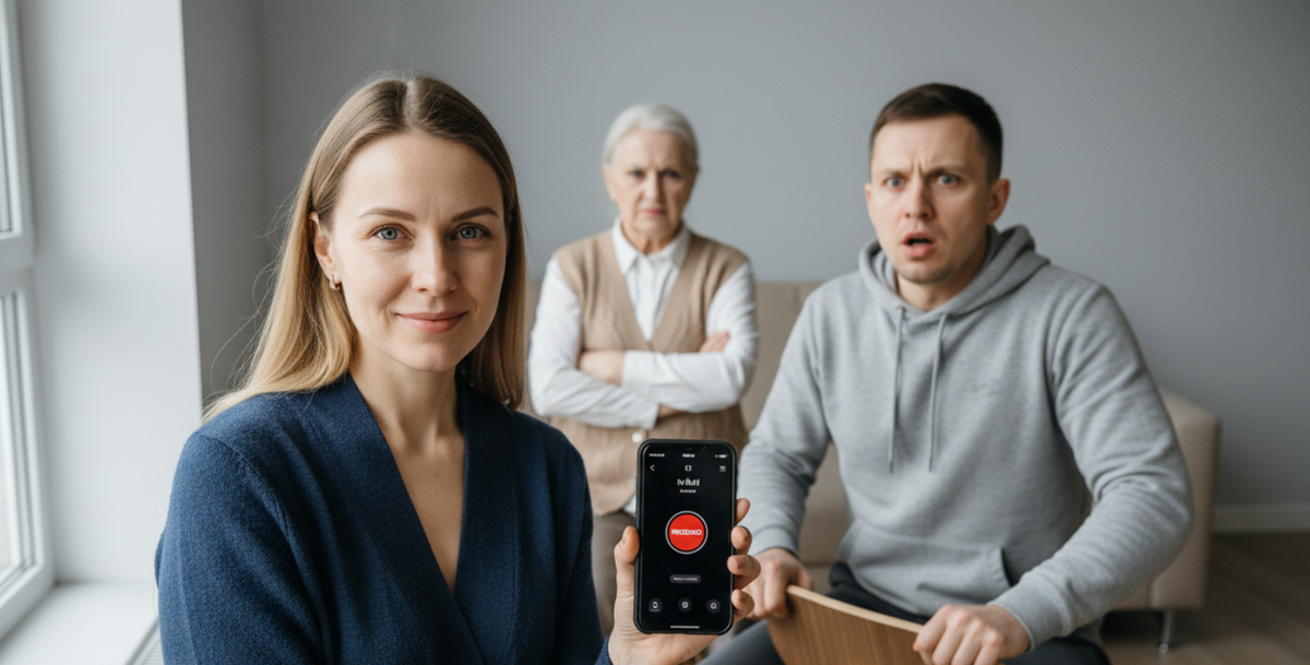 Елена достала телефон. Она нажала всего одну кнопку, и на всю комнату раздался голос свекрови, записанный прошлым вечером.