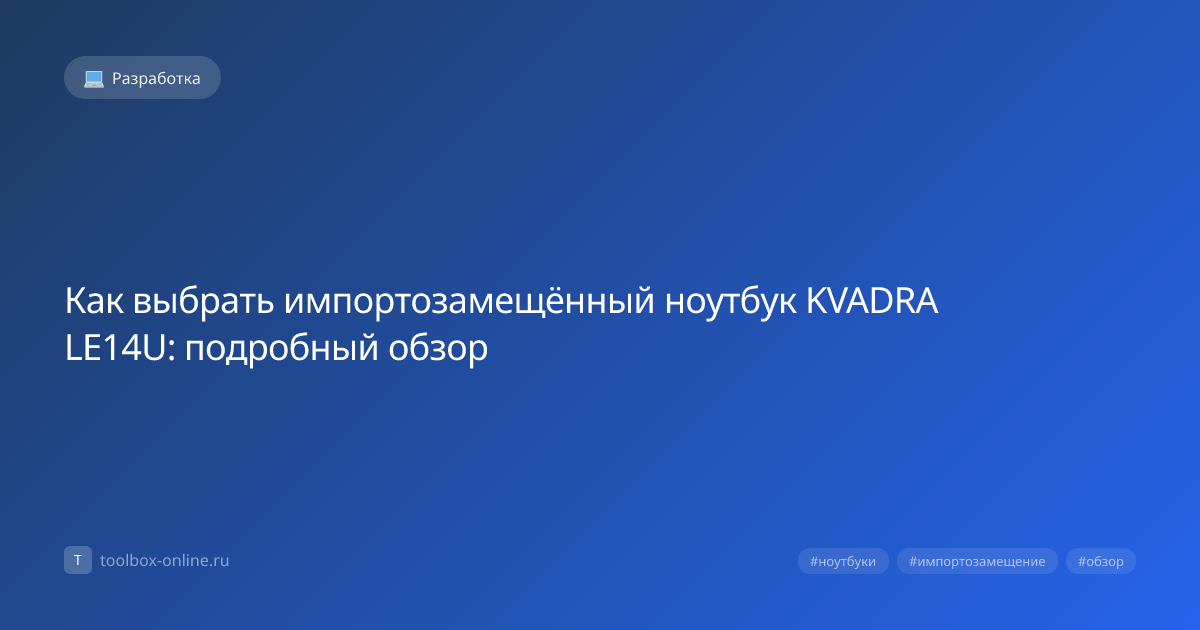 KVADRA LE14U — это полностью импортозамещённый ноутбук, оснащённый процессором «Эльбрус‑А1», 14‑дюймовым IPS‑дисплеем и аккумулятором на 57 Вт·ч, который позволяет работать до 9 часов без подзарядки. Он предназначен для разработчиков, системных администраторов и специалистов, которым важна отечественная экосистема и защита данных. В 2026 году цена базовой конфигурации стартует от 49 900 рублей, что делает его конкурентоспособным вариантом на российском рынке. Ниже перечислены ключевые параметры, которые определяют производительность и удобство использования ноутбука. Эти данные помогут быстро сравнить его с другими моделями. Выбирая отечественный ноутбук, вы получаете преимущества в области безопасности, совместимости с российским ПО и поддержки локального сервиса. Кроме того, в 2026 году правительство предоставляет субсидию 5 % на покупку импортозамещённой техники, что снижает стоимость на 2 500 рублей. Сначала проверьте совместимость SSD: он должен поддерживать NVMe 1.4 и форм-фактор