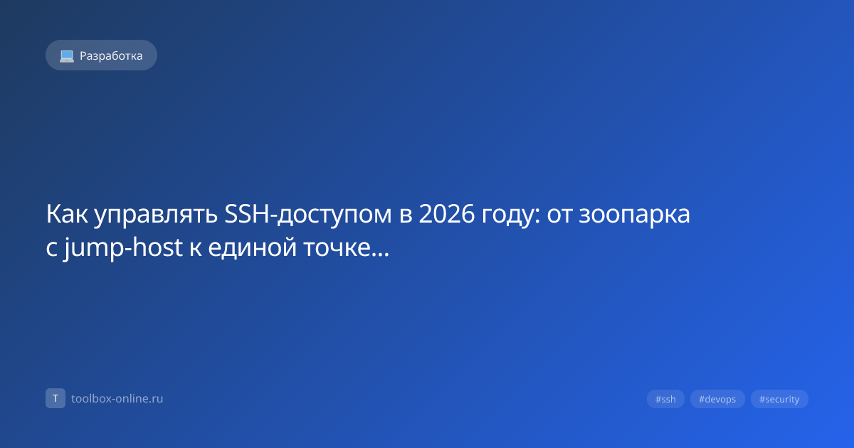 В 2026 году управление SSH‑доступом централизовано через Warpgate — единую точку входа, заменяющую старый «зоопарк» из jump‑host и Ansible‑скриптов. Такая архитектура уменьшает количество открытых портов на 95 % и ускоряет подключение сотрудников на 30 %. Переход осуществляется поэтапно: сначала внедряется Warpgate в тестовую подсеть, затем мигрируют ключи и правила доступа. Важно сохранять обратную совместимость на 48 часа, чтобы избежать потери доступа. Warpgate консолидирует более 150 устройств в одну панель, снижая расходы на администрирование и лицензии. Задержки чаще всего вызваны неверно настроенными маршрутизациями или перегруженными воркерами. Warpgate предоставляет встроенный журнал событий, который можно экспортировать в SIEM‑систему в реальном времени. Ansible остаётся мощным инструментом для конфигурации серверов, но Warpgate берёт на себя роль «единой точки входа», упрощая управление доступом. Воспользуйтесь бесплатным инструментом Warpgate‑Demo на toolbox-online.ru — раб