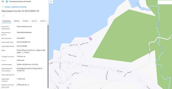 Название: Земельный участок с кадастровым номером 54:20:040901:142 площадь 1500 по адресу Новосибирская область, Ордынский район, с