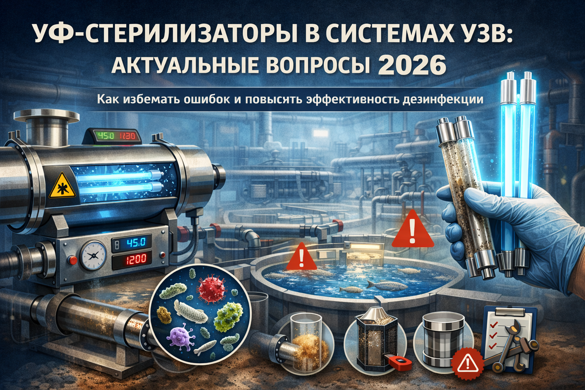 В 2026 году тема интеграции ультрафиолетовых стерилизаторов в системы замкнутого водообмена (УЗВ) актуальна как никогда. Рост требований к качеству воды и санитарным нормам в рыбоводстве и других отраслях усиливает внимание к эффективному обеззараживанию. На практике специалисты сталкиваются с проблемами снижения дезинфицирующего эффекта из-за ошибок в выборе, монтаже и обслуживании УФ-оборудования. Это ведёт к рискам распространения патогенов и экономическим потерям. Понимание технологических особенностей УФ-стерилизаторов и типичных ошибок — ключ к стабильной работе систем обеззараживания. В текущей практике важно не только правильно подобрать оборудование, но и обеспечить грамотную интеграцию с учётом гидравлики, контроля параметров и регламентов технического обслуживания. Далее — ответы на главные вопросы, которые помогут избежать типичных ошибок и повысить эффективность УФ-дезинфекции в системах УЗВ. Основная ошибка — неправильный подбор мощности и типа лампы. Для УЗВ дозировка УФ