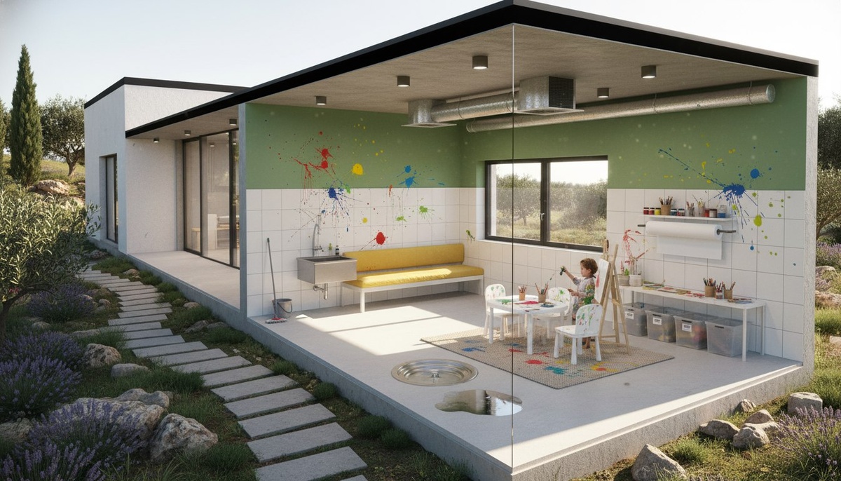 ? 🤔 Моющаяся творческая комната — не уголок, а полноценная комната под «хаос»: всё — от пола до стен — выдерживает мытьё, инженерия (слив, вентиляция, свет) рассчитана на активное использование, мебель легко отмывается. Ребёнок перестаёт жить с птичьим «нельзя», а дом не превращается в поле боя. Мы в Box House закладываем такие зоны уже на этапе проекта, особенно в монолитных домах по технологии SCIP в Крыму. Хотите пример планировки? 🏡