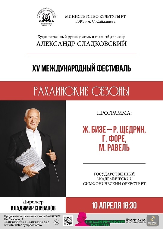 10 апреля в Большом концертном зале имени Салиха Сайдашева состоится второй вечер фестиваля «Рахлинские сезоны». Это особая дата в истории Госоркестра Татарстана, ведь именно 10 апреля 1967 года состоялся первый концерт коллектива. Спустя почти шесть десятилетий в этот день на сцену с казанским оркестром впервые выйдет народный артист СССР, Артист мира ЮНЕСКО, Герой Труда РФ, полный кавалер ордена «За заслуги перед Отечеством» Владимир Спиваков. В свою первую программу с ГАСО РТ он включил «Кармен-сюиту» Бизе – Щедрина, Болеро Равеля и Павану Форе.
