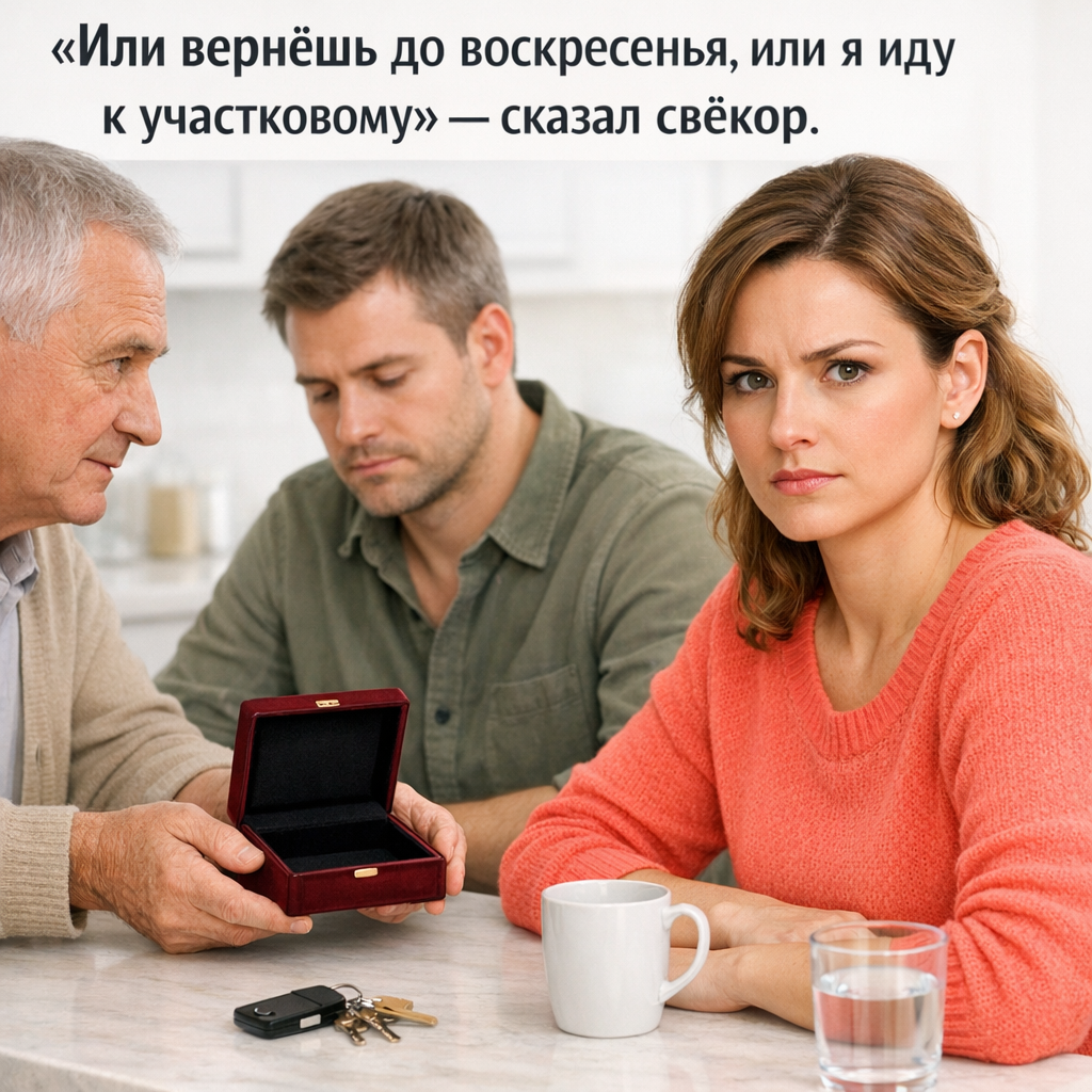 Я посмотрела на свекра. Он стоял, опустив руки, в глазах его был мелкий, суетливый страх. Не раскаявшегося человека, а пойманного.