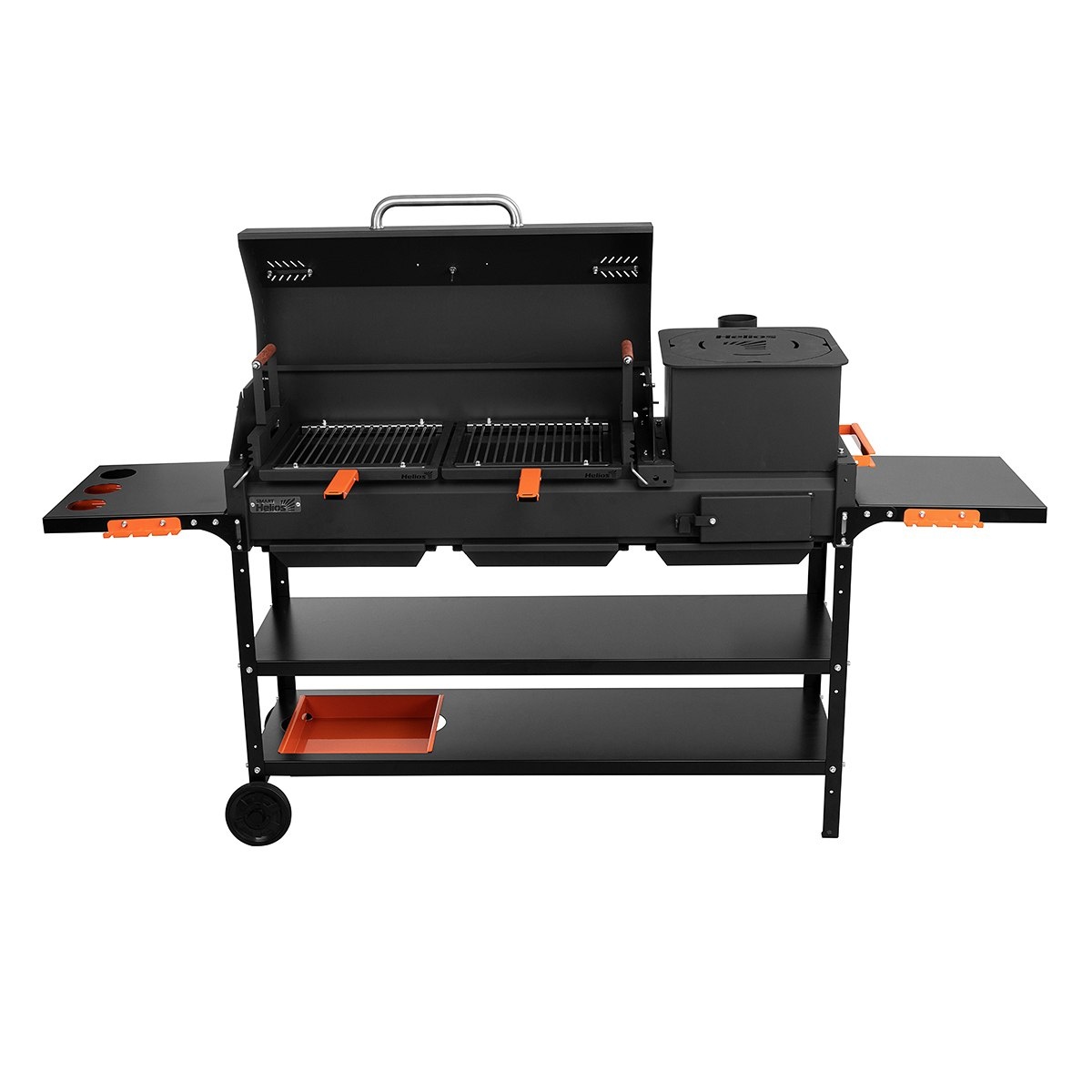 с жаровней 128 см, термостойкой краской до 1000°C, ребрами жесткости и отверстиями для розжига. Вмещает 12 шампуров и казан12 л. Заказать на ХОМИДОМИ.ру По промокоду ГРИЛЬ10 🎁🎁🎁 Подарим дымоход 🚗 Доставим и Соберем ЗА СВОЙ СЧЕТ!!! + ПРИГЛАШЕНИЕ на мастер-класс 25 апреля.. Анонс уже завтра Получить консультацию MAX Гриль-мангал Helios SMART-1200 Люкс — это профессиональная стационарная модель для приготовления мяса, шашлыка и блюд на углях. Благодаря техническим решениям мангал обеспечивает быстрый розжиг, равномерный жар и долговечность. Почему Helios SMART-1200 Люкс — умный выбор? Облегченный розжиг углей: в днище жаровни предусмотрены отверстия для доступа воздуха. Это ускоряет разгорание углей и исключает необходимость в химических жидкостях. Жаровня не деформируется от жара: на продольных стенках выполнены ребра жесткости, которые предотвращают искривление металла при интенсивном нагреве. Высокая термостойкость: жаровня окрашена термостойкой краской Certa, выдерживающей
