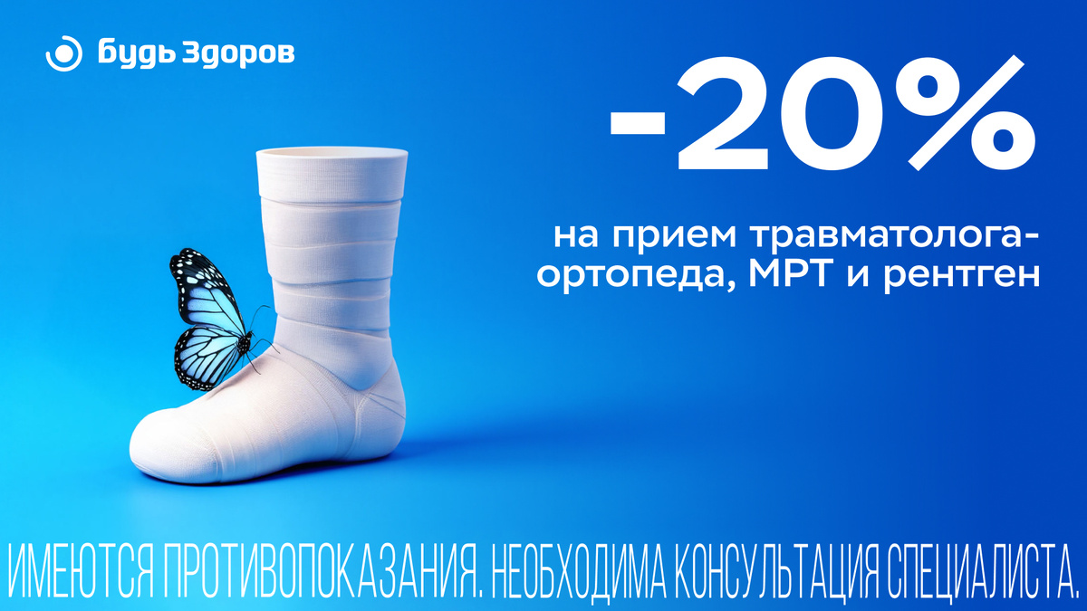 Поскользнулись, потянули связку или просто давно беспокоит спина или суставы? Не тяните — сейчас самое время проверить. В клинике «Будь Здоров» на Сущёвском Валу весь апрель действует акция: −20% на приём травматолога-ортопеда, МРТ и рентген по промокоду NEWTRAVMA2 Что входит в акцию: ✅ первичный приём травматолога-ортопеда ✅ МРТ по назначению врача ✅ рентген по назначению врача Все исследования со скидкой, если они назначены на приёме. Пройти их нужно в течение 5 дней. 📍 Москва, ул. Сущёвский Вал, д. 12 Запись на прием: ➖ по телефону +7(495)-121-31-42, ➖ в мобильном приложении «Будь Здоров», ➖на сайте, ➖в личных сообщениях группы «Будь Здоров» в телеграме Telegram / VK / MAX