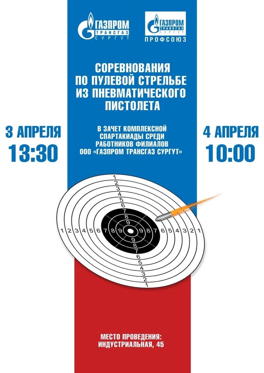 » 3–4 апреля в СОК "Лидер" (г. Сургут) прошли соревнования по пулевой стрельбе из пневматического пистолета в рамках Комплексной спартакиады «Газпром трансгаз Сургут». Командный зачёт: 🥇 1 место — УТТиСТ 🥈 2 место — Администрация 🥉 3 место — Сургутское ЛПУМГ 4 место — УАВР 5 место — УЭЗС 6 место — ИТЦ 7 место — Управление связи 8 место — УКС 9 место — УМТСиК 10 место — Сборная Личный зачёт: Мужчины 🥇Андриянов Сергей (УКС) 🥈Подгорбунских Владимир (УАВР) 🥉Сарычев Николай (Сургутское ЛПУМГ) Женщины 🥇Крючева Зульфия (УЭЗС) 🥈Царицон Гузель (УТТиСТ) 🥉Плетнева Наталья (УТТиСТ) Спасибо участникам за точность и выдержку. Отдельная благодарность организаторам. Поздравляем победителей и призёров! 🎉