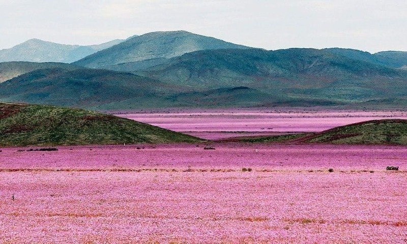 🌺Из-за сезона дождей самая сухая в мире пустыня расцвела тысячами мальв.