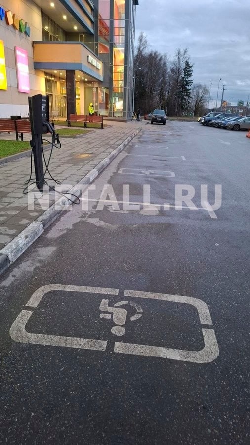 Глазами очевидцев: все парковочные места у зарядок для электромобилей на стоянке у ТЦ «Столица» в 23-м микрорайоне обозначены как инвалидные