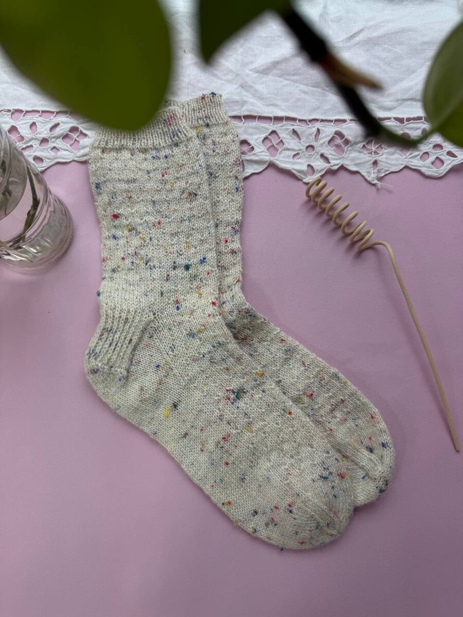 Ярослава связала милые носочки из Rellana Тweed, и они точно напоминают сладкую посыпку на пирожных и десертах 🧁 Ненавязчивый теневой рисунок хорошо читается, и, вопреки расхожему мнению, только подчеркивает фактуру нити. ❓А вы вяжете узоры на твидовой пряже?