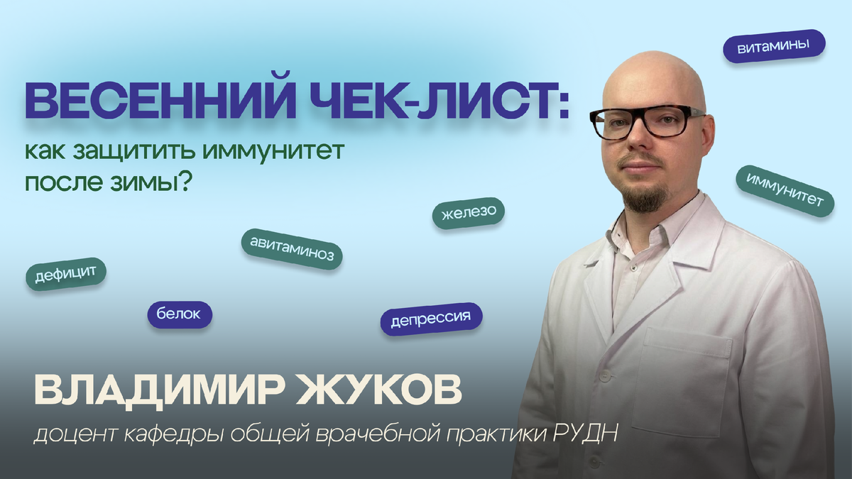 Пуховик висит в самом дальнем шкафу, шапки убраны на самую высокую полку — значит, наступила долгожданная весна! Однако каждый год все тёплые вещи сменяются на градусник и чай с малиной… Как защитить свой иммунитет весной, существует ли «весенняя депрессия» и как отличить авитаминоз от болезни — рассказал Владимир Жуков, доцент кафедры общей врачебной практики РУДН. Пик заболеваемости — не январь, а февраль-апрель: вирусы ещё активны, но мы уже расслабились и перестали одеваться по погоде. Хронический стресс, дефицит сна и короткий световой день — накопившийся долг организма к концу зимы, который ослабляет иммунную защиту. В межсезонный период особенно важно: Риновирус, главный возбудитель ОРВИ, активнее всего размножается, когда слизистая носа охлаждается до 33–35°C. Весной мы перестаём прикрывать нос и начинаем дышать ртом на улице — тогда организм выделяет меньше специальных белков в ответ на вирусную инфекцию. Но дело не только в холоде: резкие перепады температуры сами по себе н