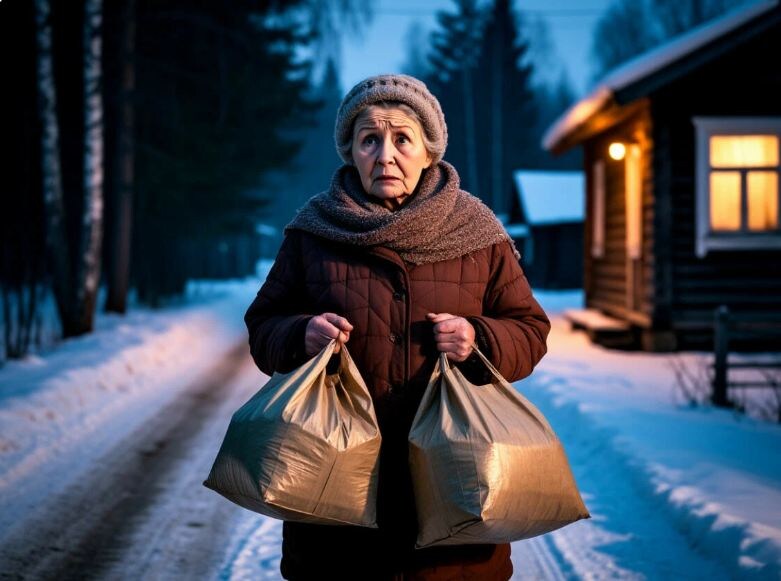 29 декабря, ближе к вечеру, Надежда Кузьминична собралась в местный магазин за продуктами к празднику. Колбасы, банку зелёного горошка, майонез под оливье, мандаринов, конфет — полный список, который она старательно выводила на обороте рекламной листовки, сунутой в почтовый ящик неизвестно кем и зачем.