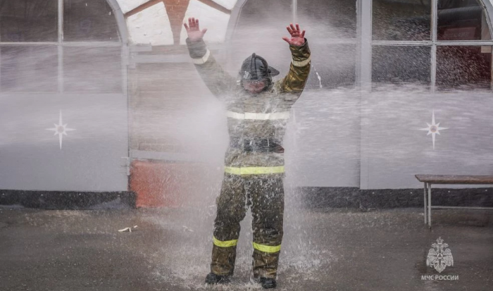 Волгоградские пожарные окатили водой уходящего на пенсию коллегу
