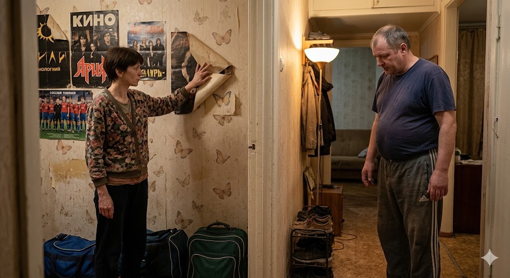Здесь когда-то были бабочки. Фиолетовые и жёлтые. Она сама помнила — как клеила, как хохотала, как кричала маме: «Самая красивая комната в мире!» Потом стала голубая — «летняя». Потом — постеры. Чужие. Потом — ничего.
