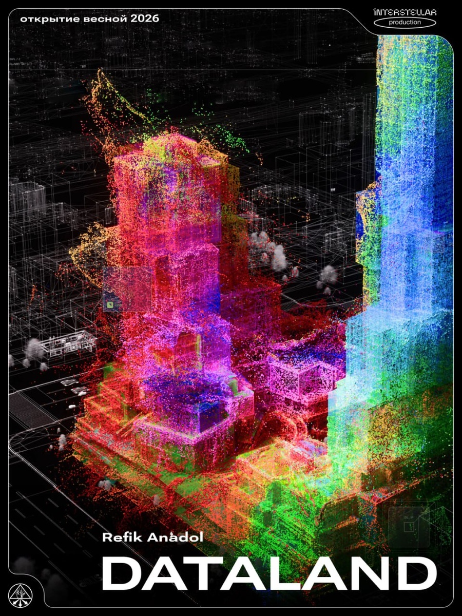 Проект художника Рефика Анадола планируется к запуску весной 2026 года в Los Angeles. И это попытка превратить данные в среду и архитектуру восприятия. Мы видим тут эталонный пайплайн работы с данными как художественным материалом. В основе Dataland - Large Nature Model: собственная модель, обученная на массивах данных о природных системах, включая архивы научных и музейных институций. Это принципиальный сдвиг: Анадол работает не с изображениями, а с поведением данных. Они текут, трансформируются, формируют структуры и реагируют на среду. А также это мультисенсорная система. Визуал, звук и эксперименты с ароматами собираются в единый опыт, где восприятие синхронизируется по нескольким каналам. Это работа на уровне когнитивных и сенсорных реакций. Это не эксплуатация готовых моделей, а работа с собственными датасетами, архитектурой и логикой поведения среды. Пока другие спорят, является ли ИИ искусством, мы наблюдаем, как Рефик Анадол делает следующий шаг в эволюции медиа-арта 🚀
